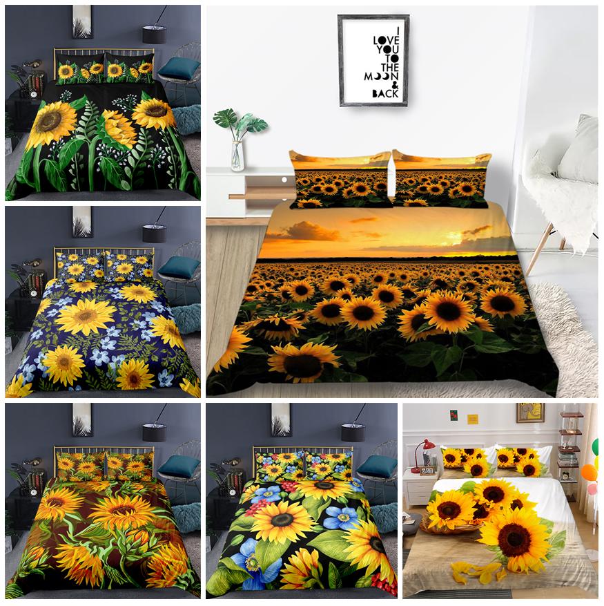 Домашнее постельное белье с тематикой подсолнуха, пододеяльник, наволочка, комплект домашнего постельного белья для детской спальни, полный размер AU/EU/US