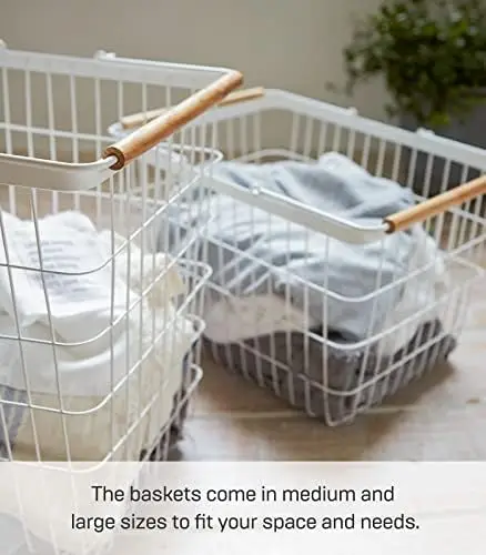 Домашние деревянные ручки | Сталь + дерево | Большая | Корзина для белья, белая корзина для пикника, органайзер для хранения, маленький
