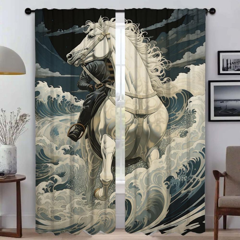 Домашние интерьерные шторы 2 шт., затемняющие шторы с изображением лошади для комнаты, 2 панели, тюль для украшения на Хэллоуин, перегородка для спальни W50xH70cmx2pcs-CL