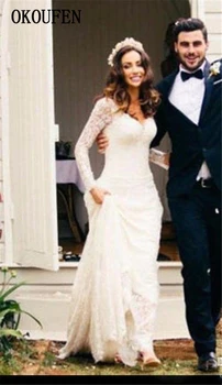 Vintage Lace Wedding Dresses 2019 Long Sleeves V-Neck Backless Country Bride vestidos de novia robe mariage Formal Bridal Gowns