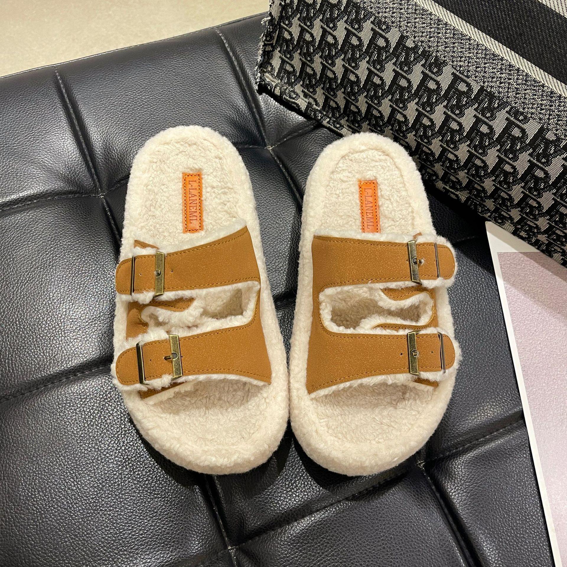 Домашние хлопковые тапочки женские с двумя пряжками на ремне плюшевые тапочки женские роскошные шлепанцы пушистые шлепанцы дизайнерские плюшевые туфли на платформе 41 хаки