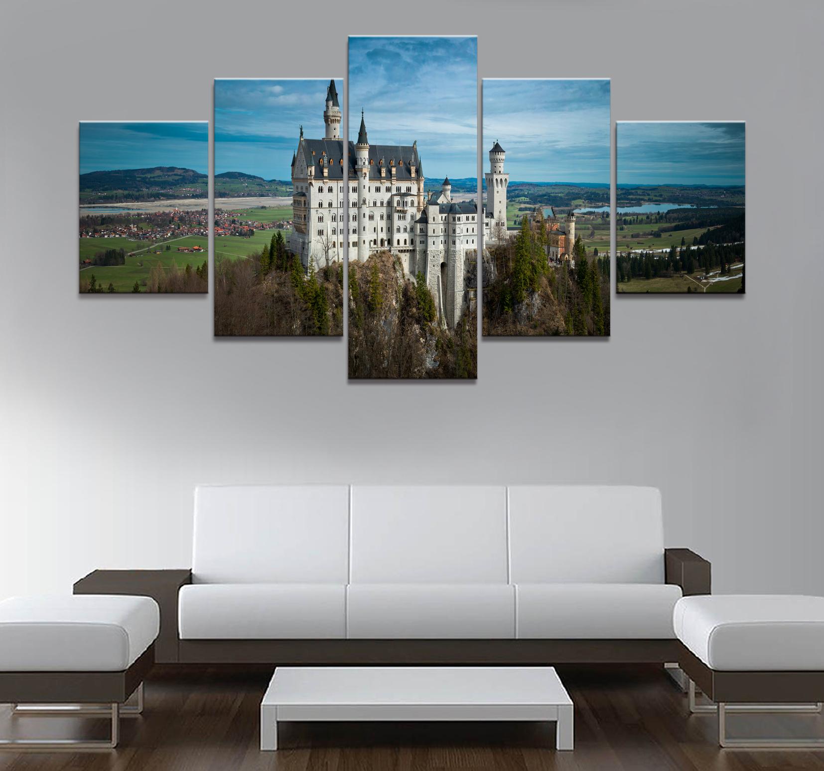 Домашний Декор Плакат HD Фотографии Печать Холст 5 Шт. Модульная Новый Лебедь Каменный Замок Пейзаж Гостиная Декоративная Живопись Без Рамки