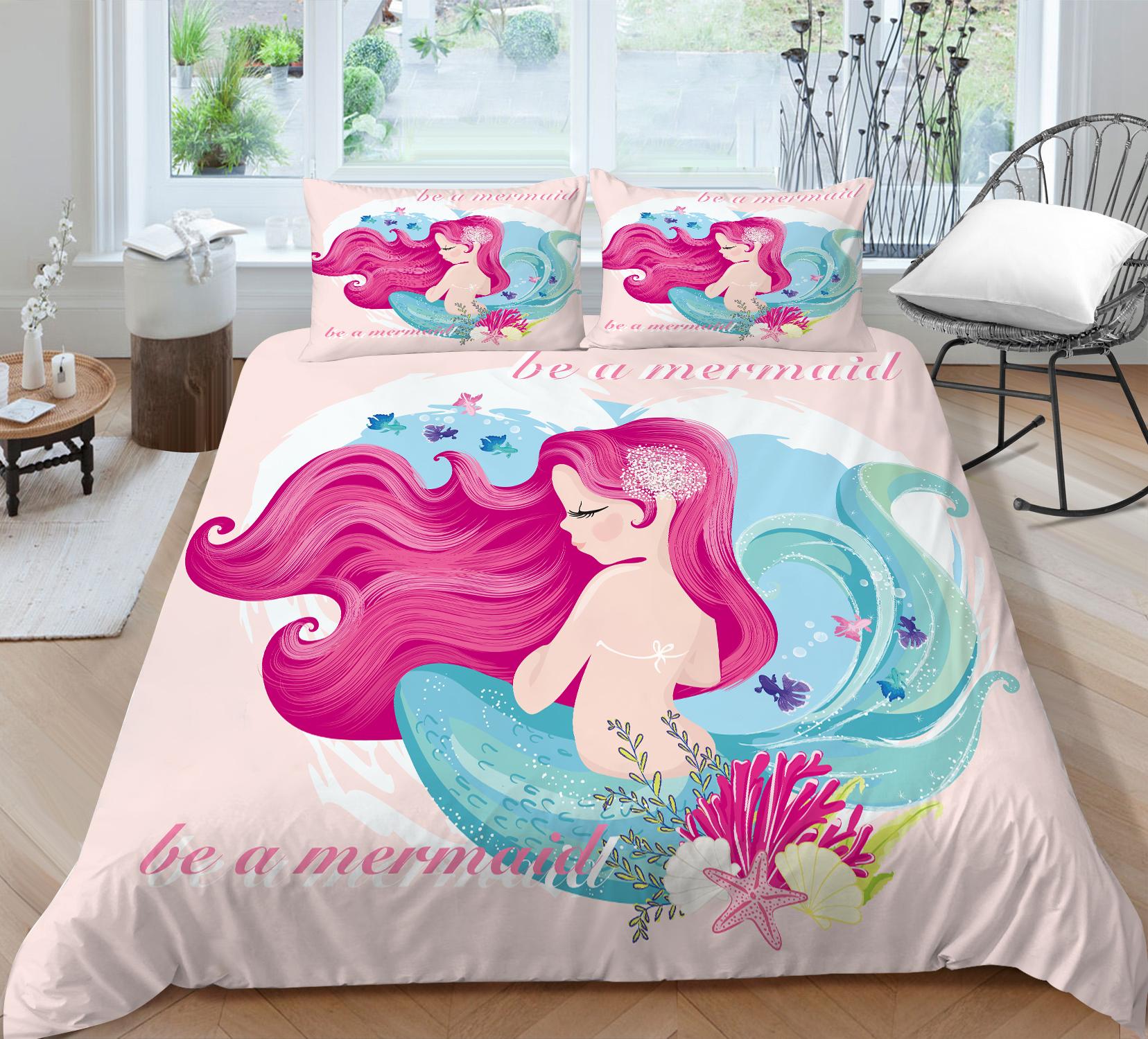 Домашний комплект постельного белья с рисунком русалки, пододеяльник, наволочка, комплект постельного белья, полноразмерная односпальная/двуспальная кровать в Австралии, ЕС/США AU Double 180x210cm