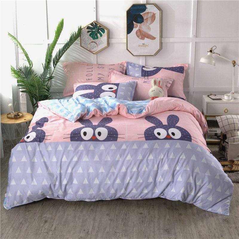 Домашний текстиль Хлопок Цельный Пододеяльник Набор из четырех предметов Постельная принадлежность Хлопок Набор из трех предметов 4 Простыня Двуспальная кровать 1,5 м 1,8 м 1.2 bed three-piece set Moe Little Rabbit (Blue)
