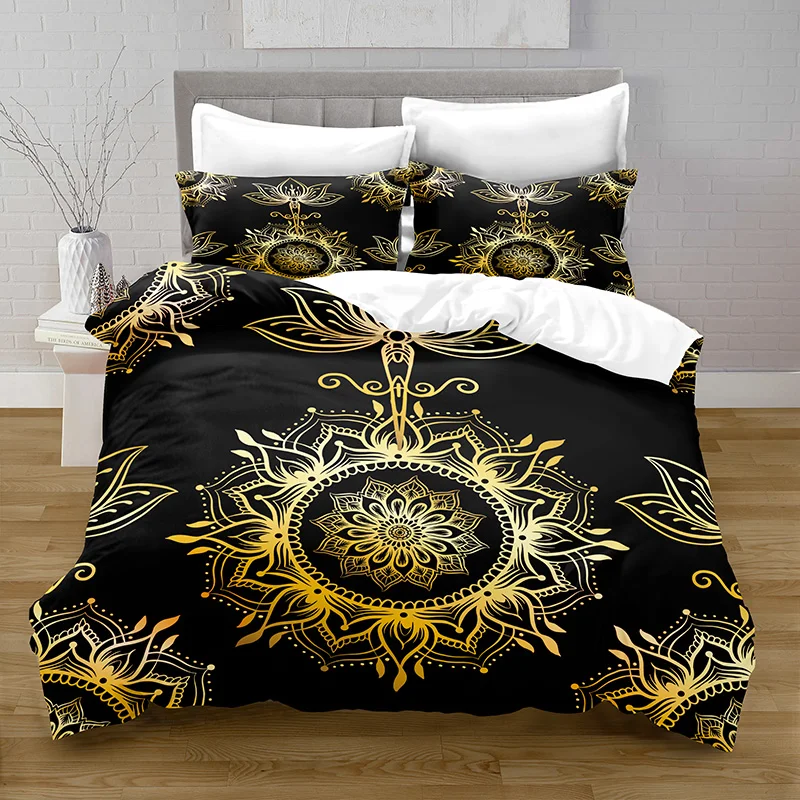 Домашний текстиль, Черное и Золотое постельное белье Printe, пододеяльник и наволочка, 2/3 шт. США/AE/UE, полный размер, Королевский Комплект постел...