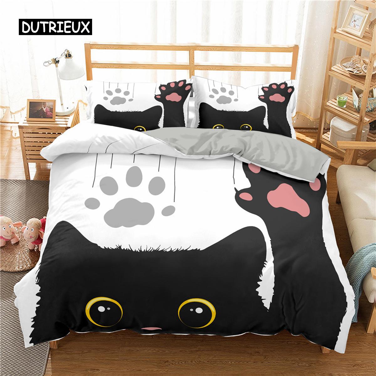 Домашний текстиль мультфильмы милый кот пододеяльник пододеяльник наволочка для мальчика девочка 2/3 шт полиэстер постельное белье размер King Queen Twin EU single(135x200cm)
