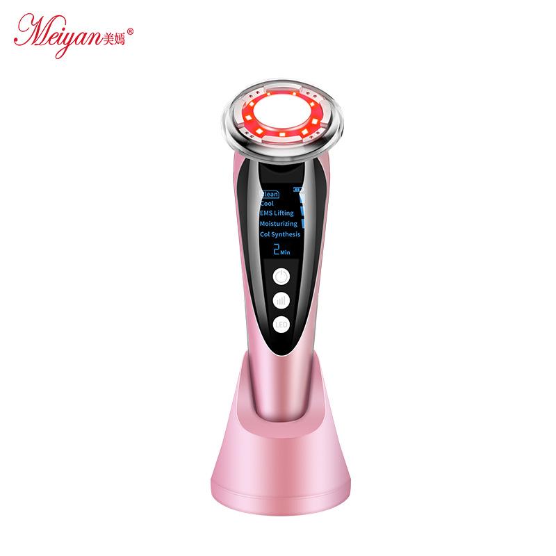 Домашний EMS аппарат для красоты лица: Горячий/Холодный Компресс, Ионная Вибрация, Фотонное Омоложение Кожи Chinese Manual розовый