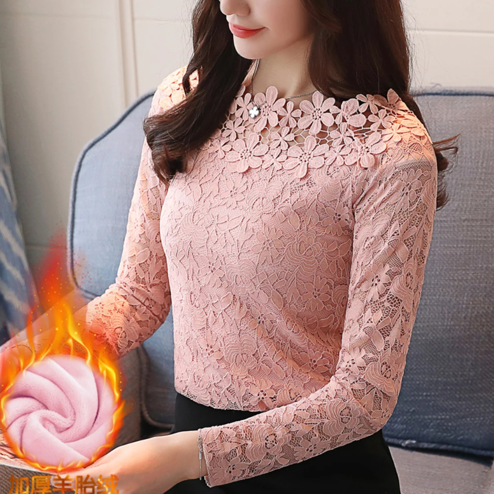 Женские футболки, сезон осень-зима, базовый кружевной топ с длинным рукавом, футболка для женщин, женские футболки, новинка, бархатная стиль...