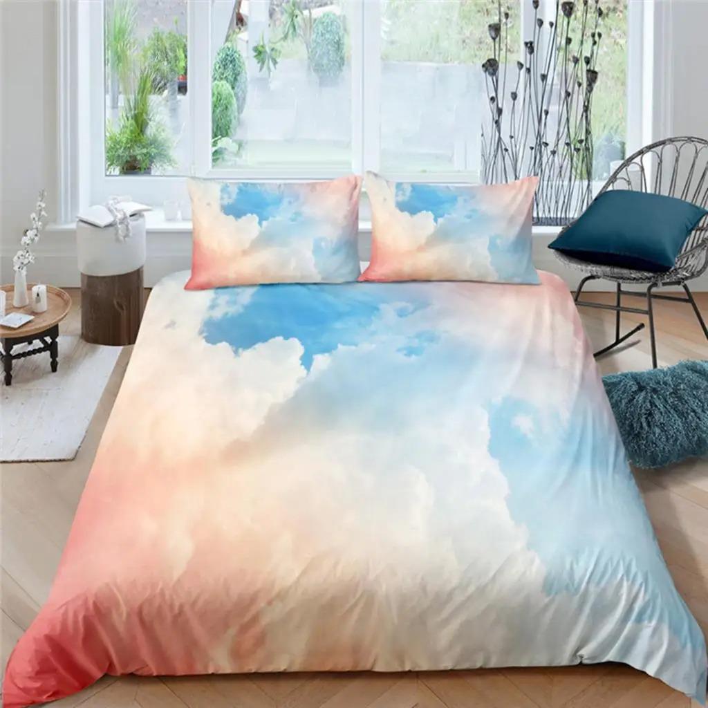 Домашняя жизнь Роскошь Цветные облака Принт 2/3 шт Мягкий пододеяльник Наволочка Королева и король Размер Детский комплект постельного белья EU/US/AU 70x133cm