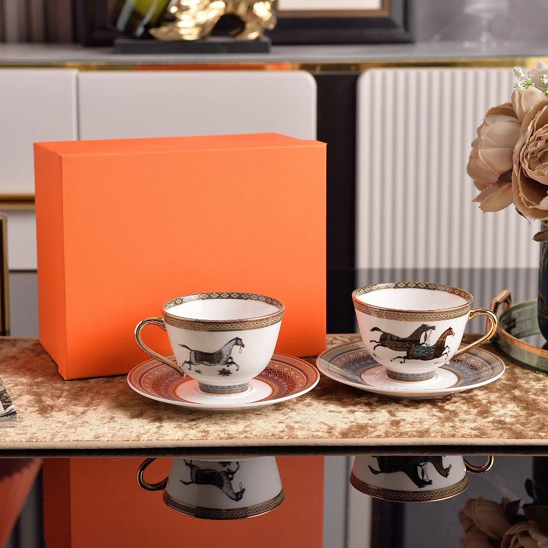 Домашняя кофейная чашка из костяного фарфора, набор для послеобеденного чая, подарочная коробка, новоселье, семья