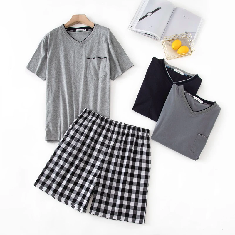 Домашняя одежда большого размера, модные повседневные уютные комплекты, хлопковая одежда для сна с шортами 100%, простая хлопковая пижама из ...