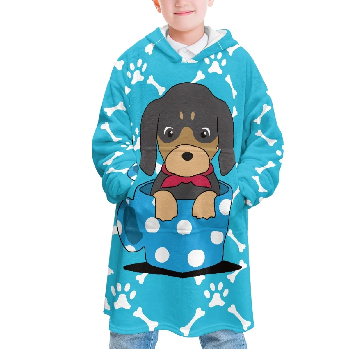 Домашняя одежда для мальчиков, чайные чашки для собак и девочек, уютное одеяло с капюшоном, Мультяшные кости/лапы, очень теплая плюшевая пер...