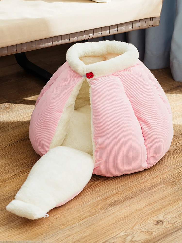 Домик для домашних животных для кошек и кошек, мягкая кровать для кошек, зимнее теплое закрытое моющееся мягкое желтое домик для собак, пред...