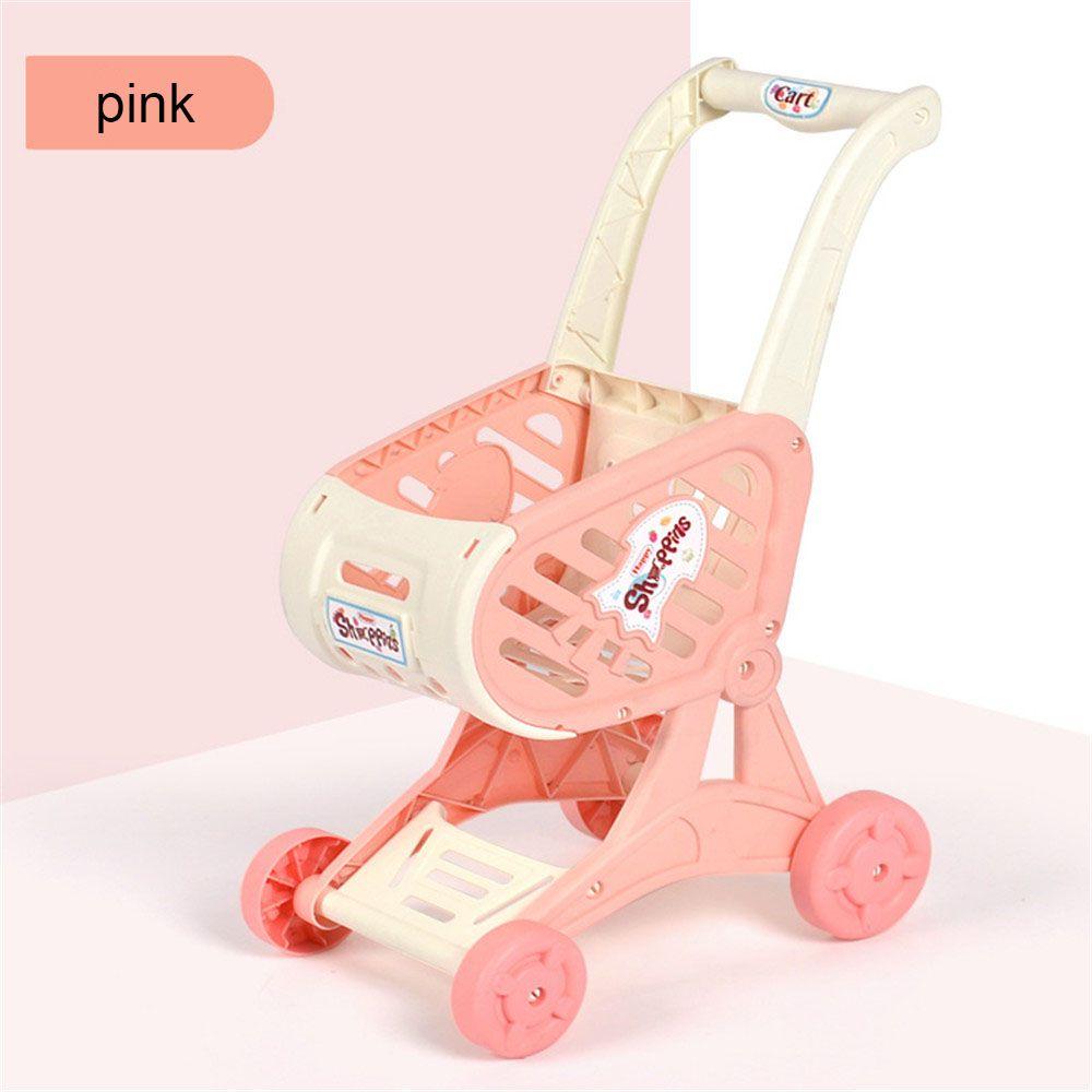 Дом Пластик Нарезанные Фрукты Овощи Тележка для Покупок в Супермаркете Игрушки Мини Симуляция Ручная Тележка розовый
