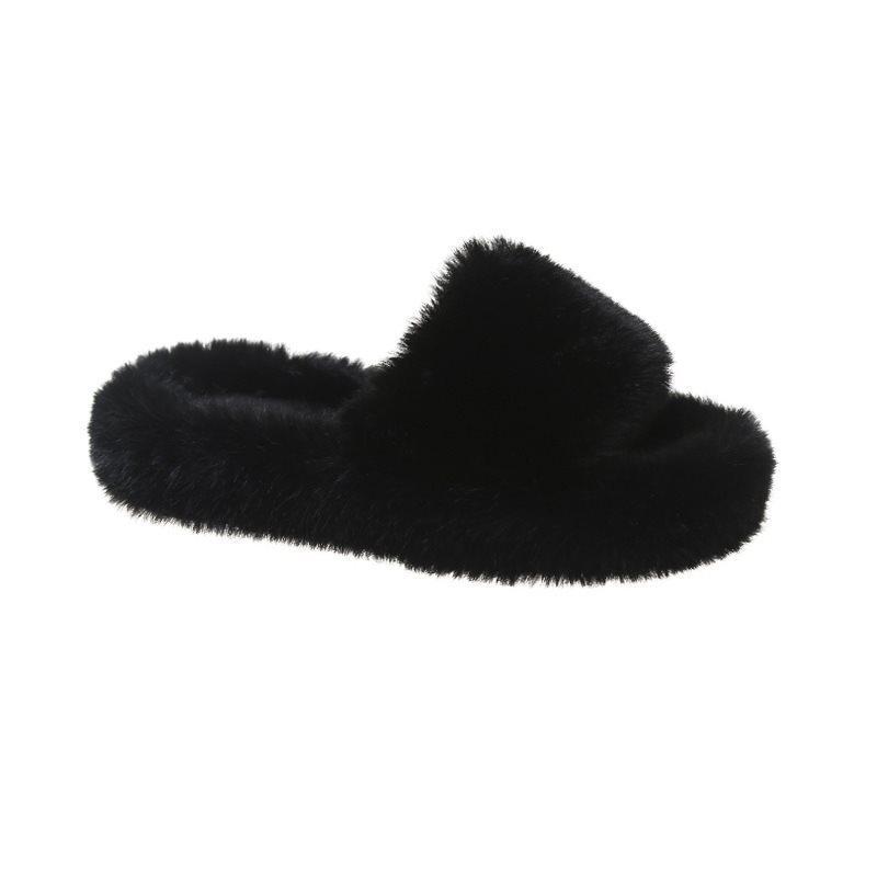 Дом интернет-знаменитости 2025 ощущение толстой подошвы шлепанцы на одно слово осень и зима пушистые тапочки женские новая хлопковая обувь пушистые черные 41 чёрный
