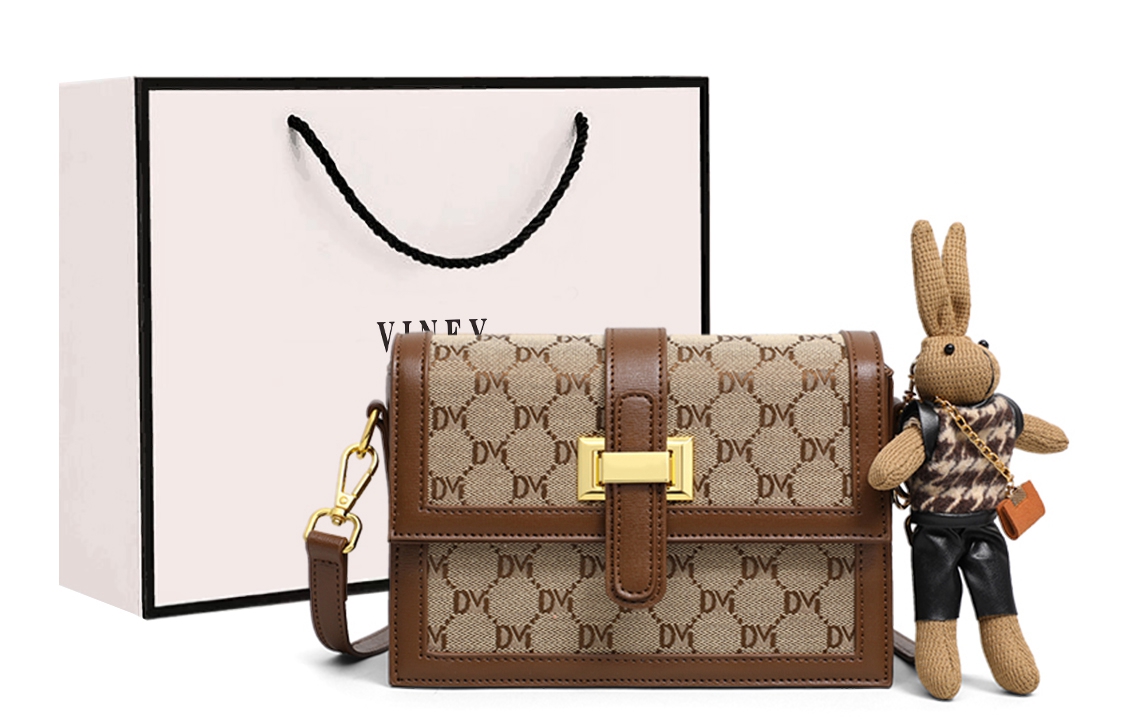 Синтетическая кожаная сумка через плечо маленькая квадратная женская кофейная VINEY