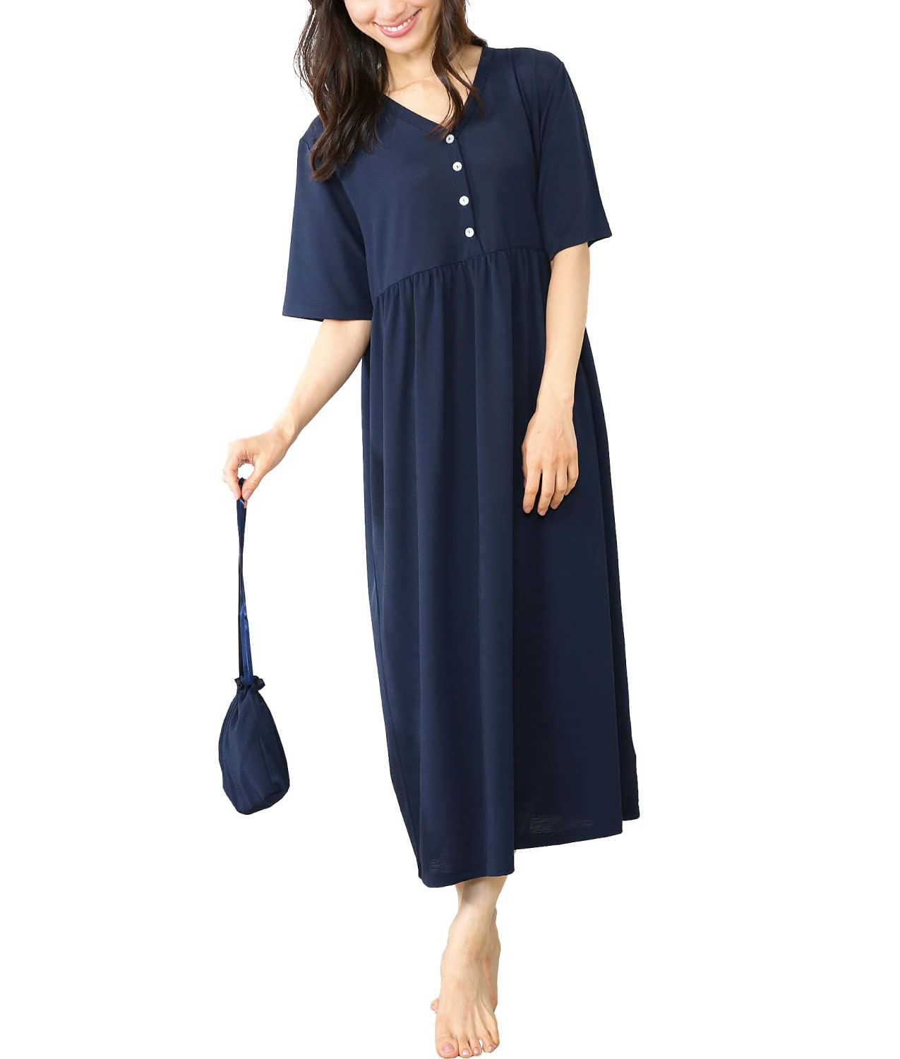 Дорожная пижама для женщин с кулиской, короткая, прохладная, тянущаяся, длинная домашняя одежда [Nishiki] Цельный мешок, Рукава, Лето, На ощупь, Ткань,
