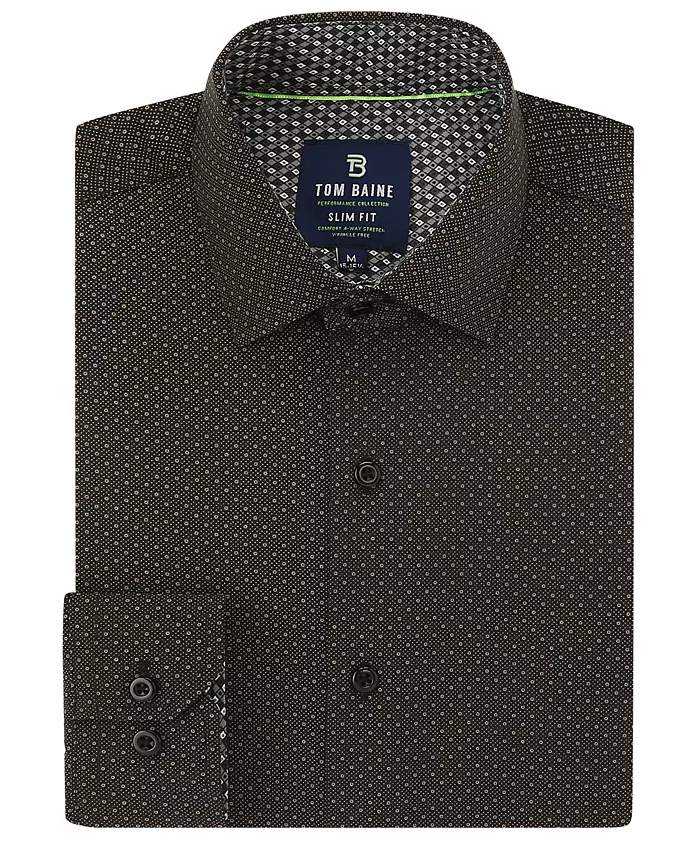 Мужская облегающая рубашка с длинным рукавом и геометрическим принтом, для активного образа жизни Tom Baine, черный