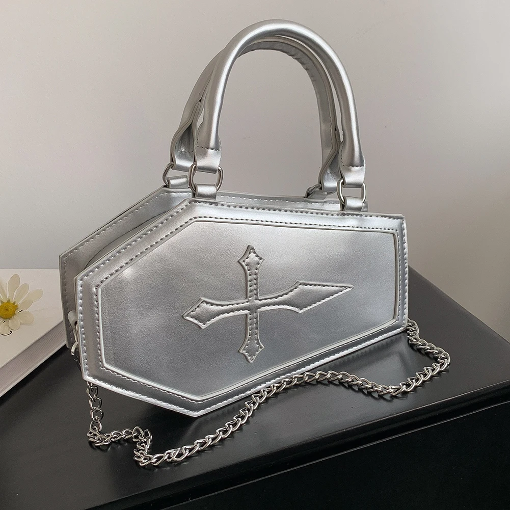 Дорожная сумка через плечо из искусственной кожи в форме гроба, женский кошелек для мобильного телефона с верхней ручкой, большая вместимость, модная для Хэллоуина, косплея
