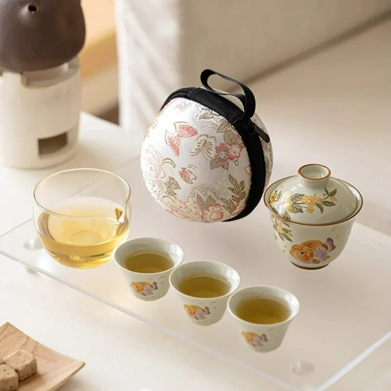 Дорожный чайный сервиз из травы и ясен, керамическая уличная портативная чашка для быстрого клиента, портативная чаша для чая с золотым карпом Guifu