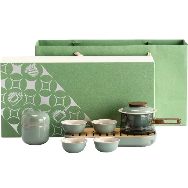 Дорожный чайный сервиз с боковой ручкой для домашнего использования, простая и роскошная маленькая портативная керамическая чайная канистра с одной кастрюлей и четырьмя чашками, в