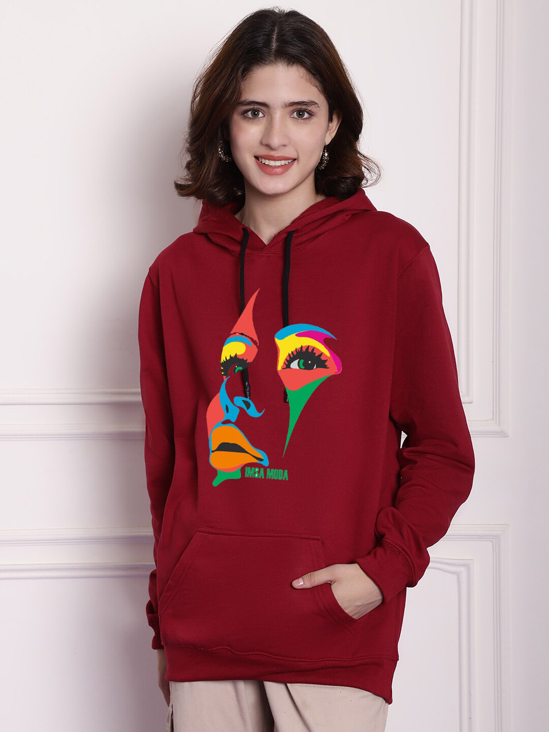 2021 European and American cross-border autumn and winter women's hooded printed blouse loose sweater