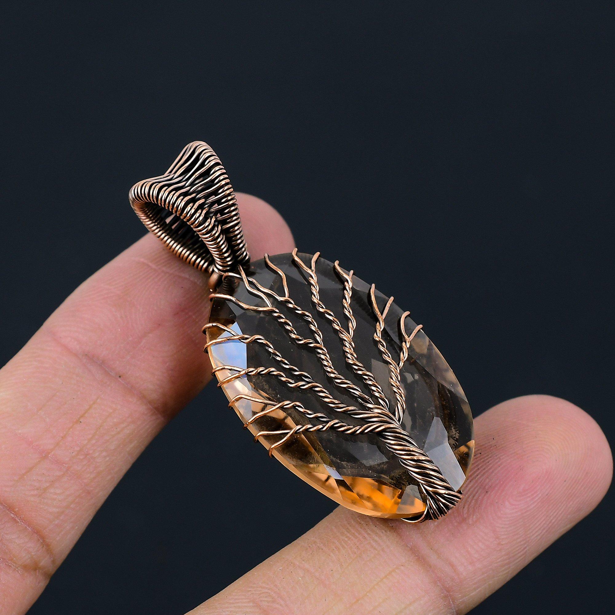 Древо Жизни Морганит Драгоценный Камень Медная Проволока Обернуть Кулон Ювелирные Изделия Ручной Работы 2.05 inches оранжевый