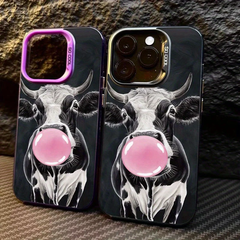 A cow design chewing bubble gum phone case for iPhone 16 15 14 13 12 11 Pro/ Max/Plus shock-proof rear cover anti-fingerprint