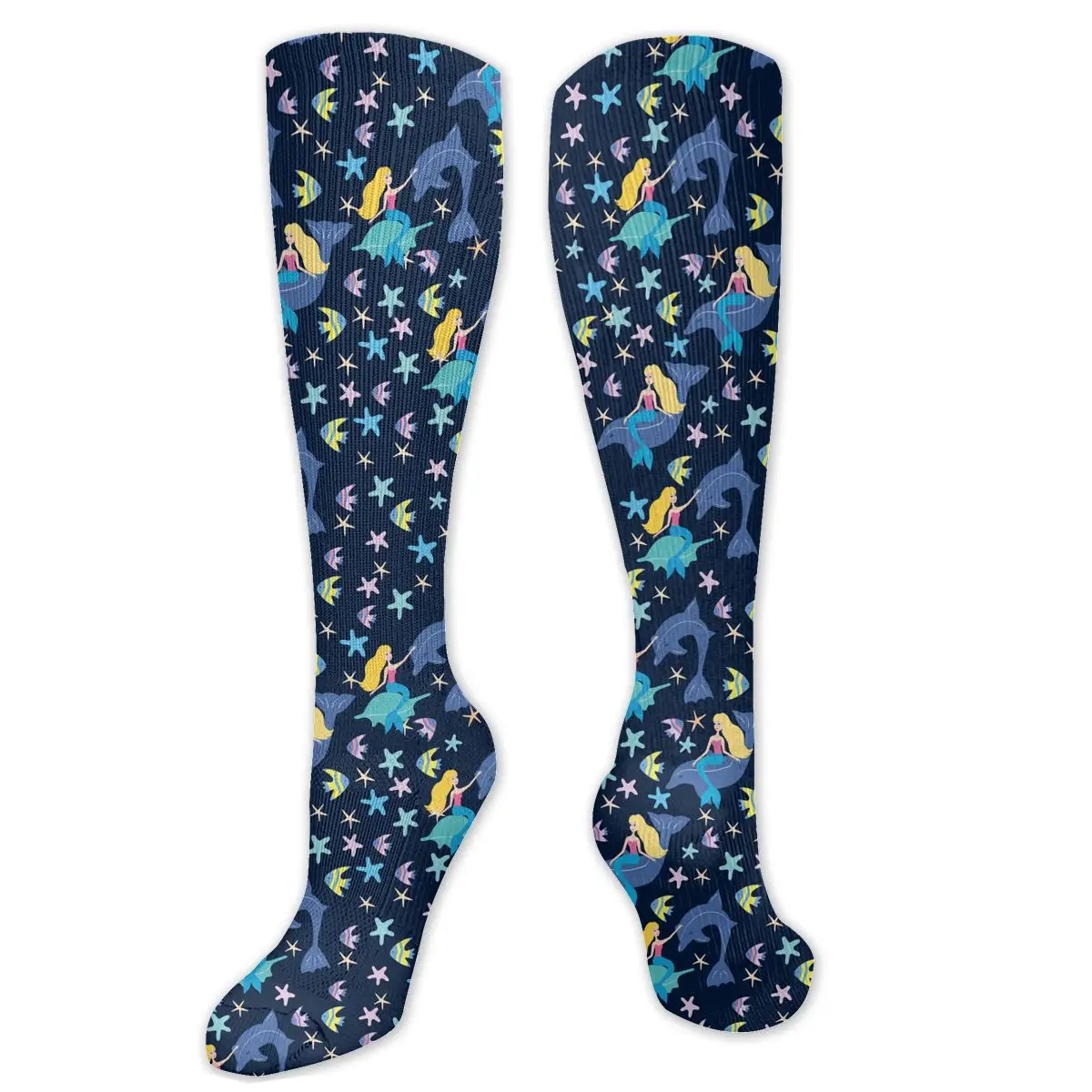 Cartoon Mermaid Kids Girl Compression Socks For Women Men Plus Size Wide Calf For Nurses Running Athletic