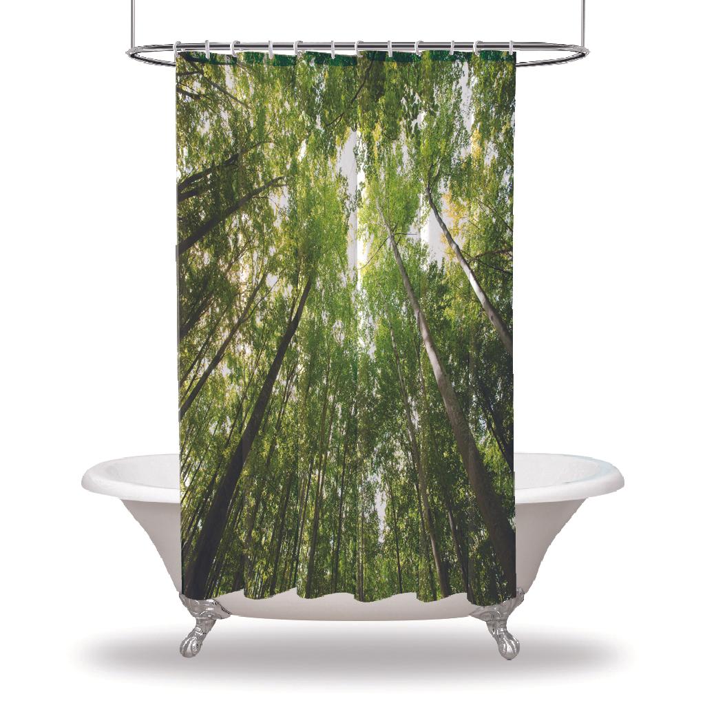 Душевая занавеска с пейзажным принтом / Водонепроницаемые занавески для душа для вашей ванны. Украшения для ванной комнаты - лесные деревья, зеленая листва, сельская местность, природа.