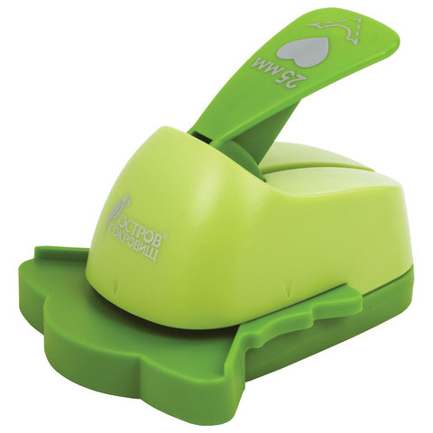 Дырокол, 1 отверстие 25мм, зеленый, ОСТРОВ СОКРОВИЩ Сердце (227175), Сердце