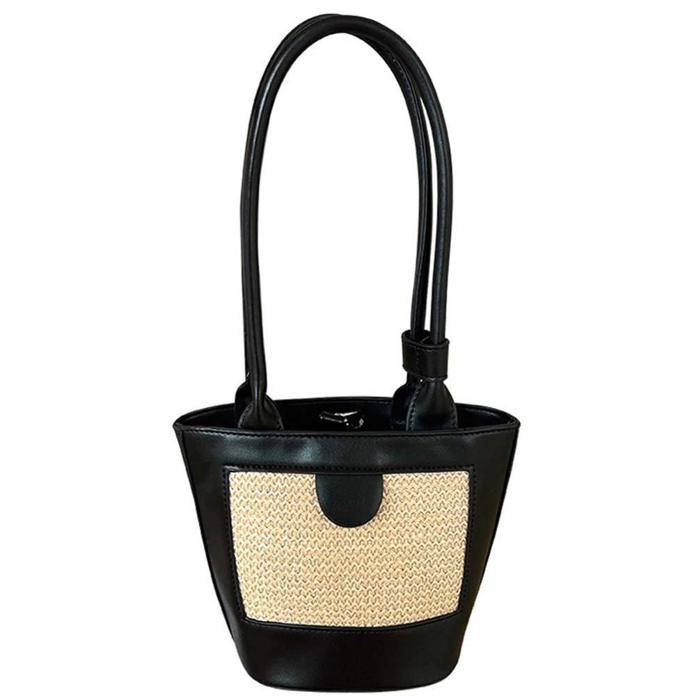 Дышащая плетеная сумка-ведро из ПУ, ретро соломенная сумка через плечо, черная женская сумка-ведро, лето чёрный