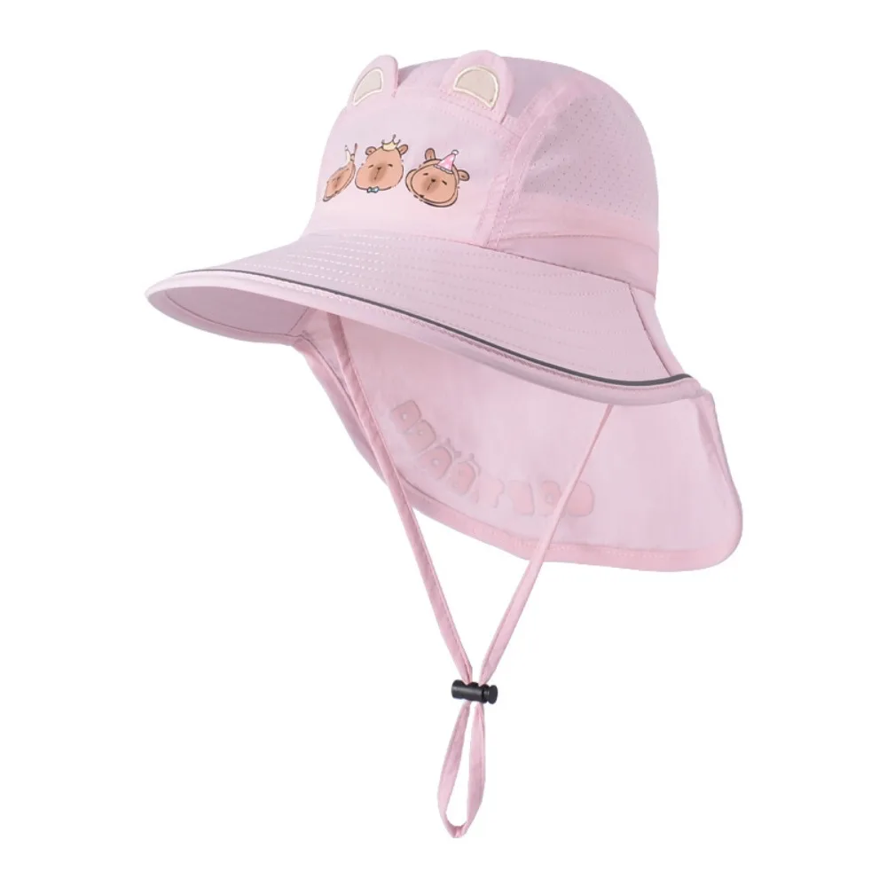 Дышащая рыбацкая шляпа с капибарой, быстросохнущая ветрозащитная веревка, детская шаль, шляпа от солнца, хлопковая детская солнцезащитная шляпа с широкими полями для девочек