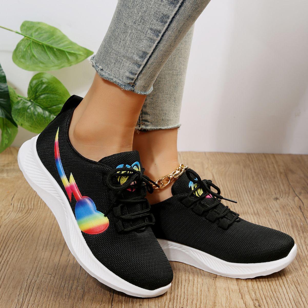 Дышащая и удобная обувь из ткани-мухи женская 2025 большой размер лето и осень новая обувь на мягкой подошве маффин повседневная спортивная обувь для бега 35 чёрный