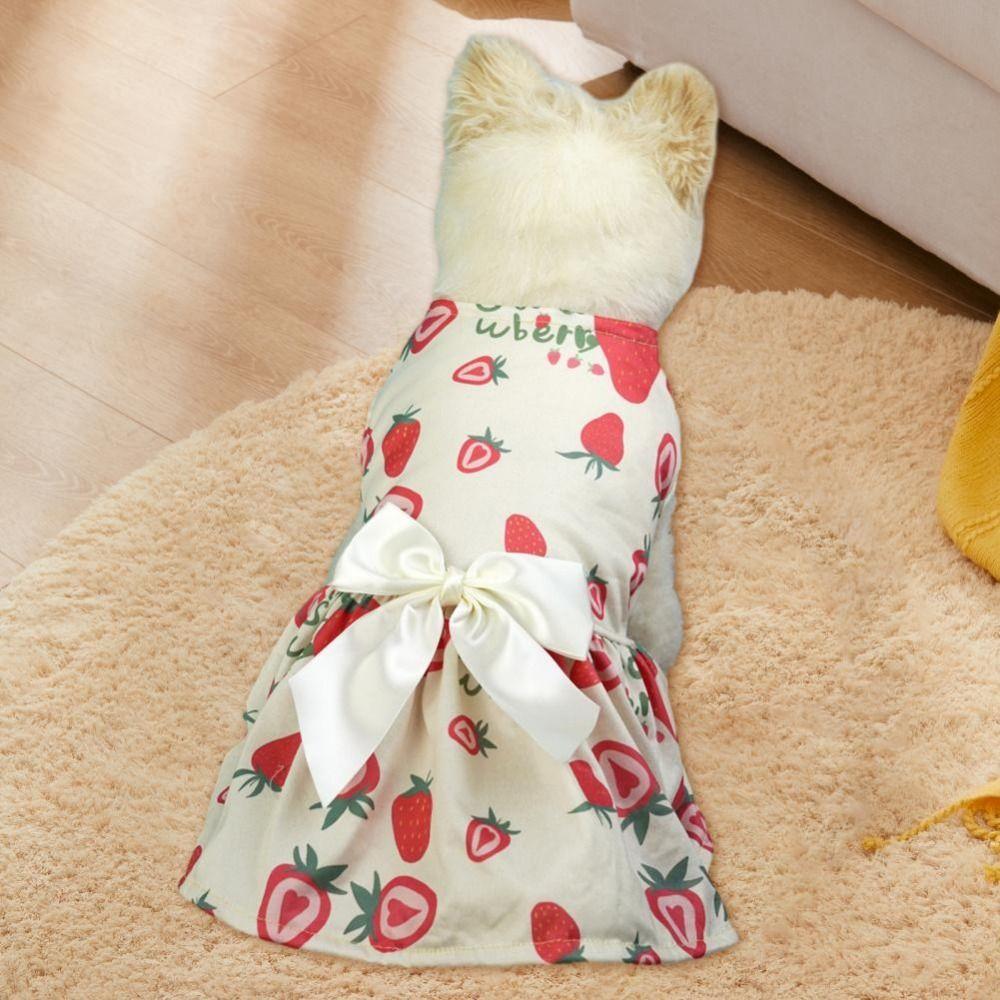 Дышащая юбка с бантом для питомца Милое платье принцессы для питомца Очаровательное платье с принтом фруктов для собак Одежда для питомцев S-Style 2