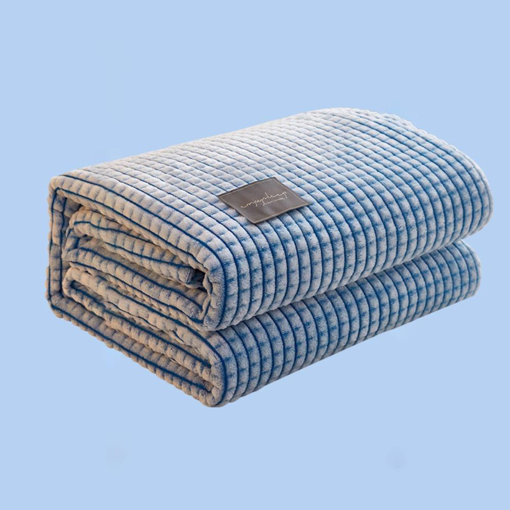 Дышащее клетчатое одеяло из кораллового флиса, приятное к коже покрывало, бытовое одеяло для сна, спальня S синий