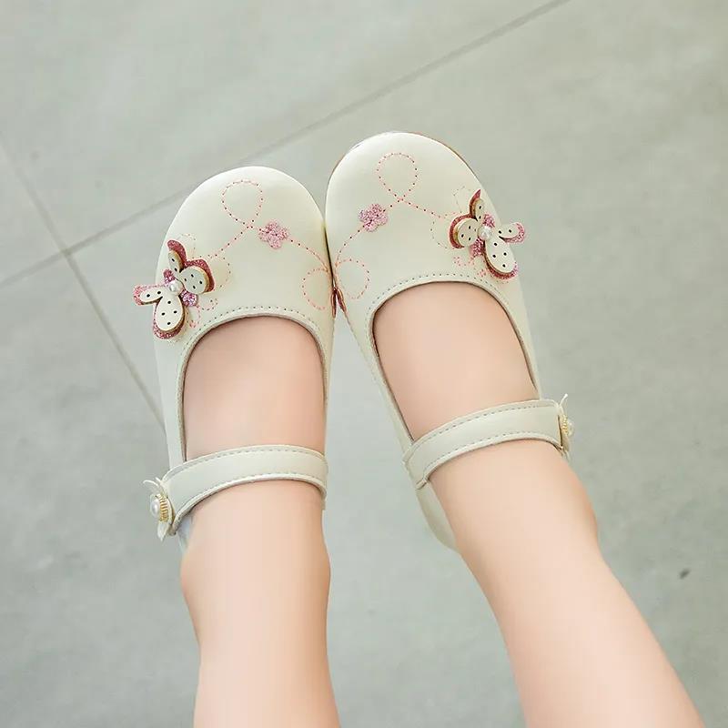 Дышащие туфли на мягкой подошве для девочек с украшением в виде бус и бабочек. Нескользящие однотонные туфли принцессы для девочек 21 белый