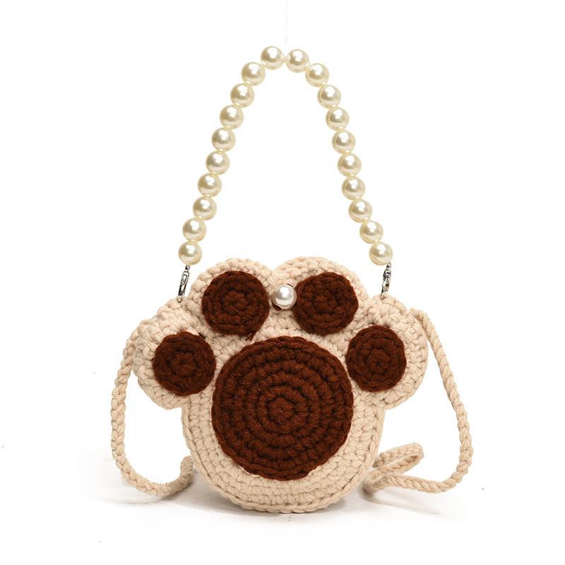 Дышащий Милый И Вязаный Крючком Кошелек для Монет в Виде Кошачьей Лапки для Дошкольников в Веселых Цветах WhiteBrown