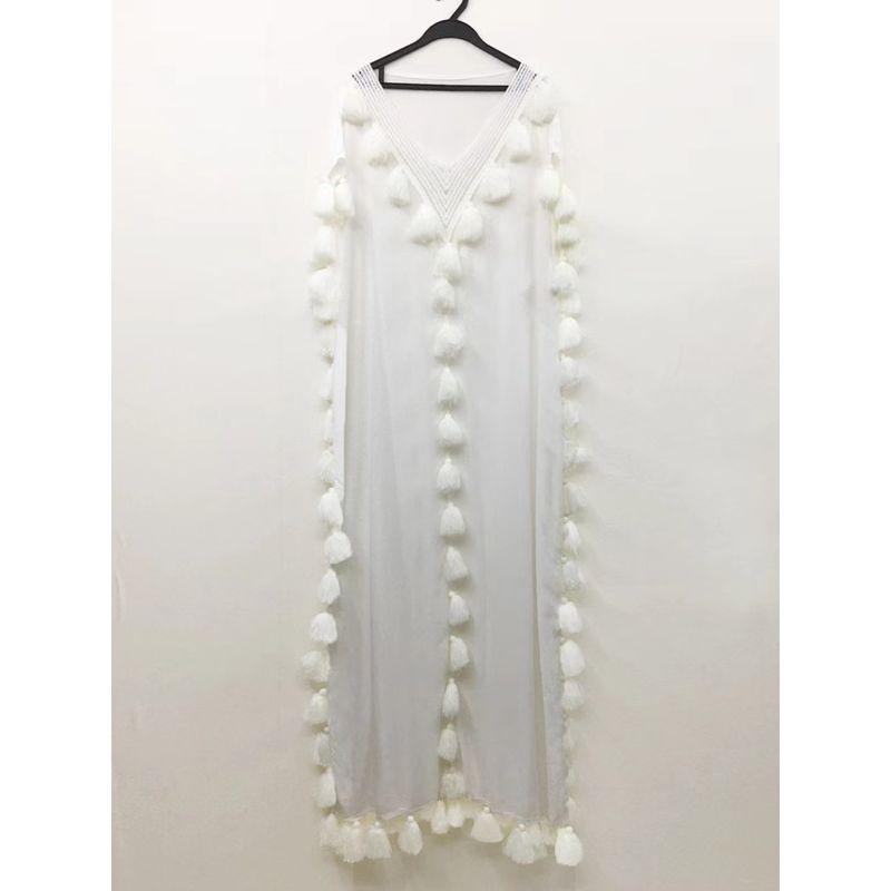 Европейская и американская женская одежда Ближний Восток плюс размер Халат V-образный вырез Вечернее платье Платье с кисточками Платье с бахромой V-образный вырез White All yards