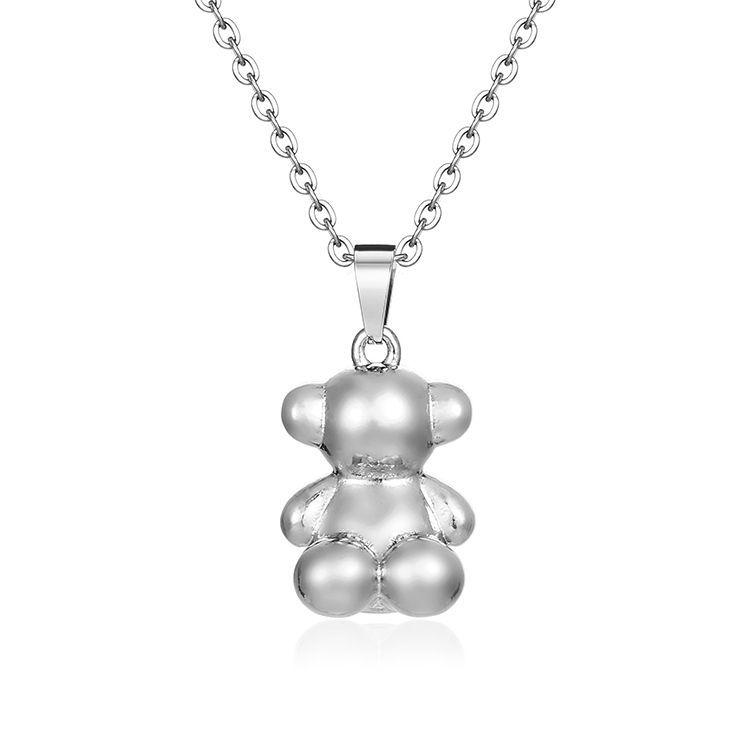 Европейская и американская мода Ожерелье с подвеской в виде медведя из нержавеющей стали – Легкая роскошь Титановая сталь Женское ожерелье 18K