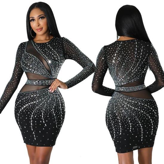 Европейская и американская мода с круглым вырезом и длинными рукавами, горячее ромбовидное платье с запахом, бедра, сексуальное платье