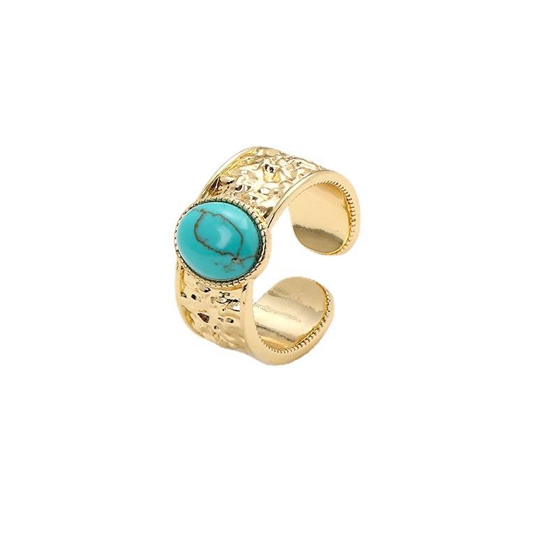 Европейская и американская ретро-личность Нерегулярная широкая версия Бирюзовое открытое кольцо Новый темперамент Светлый Роскошный Кольцо из натурального камня Женский
