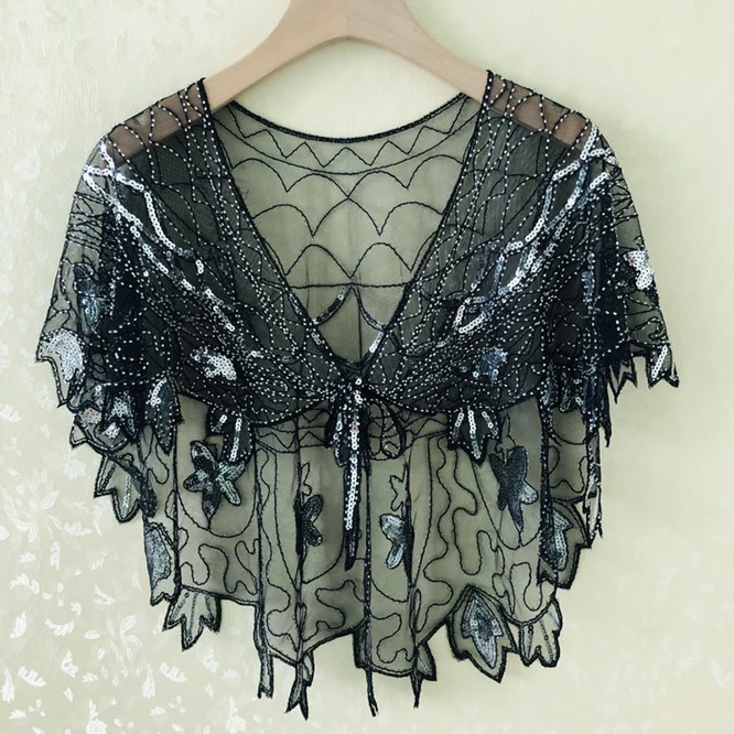 Европейская американская шаль, маленькое пальто с блестками, Женская шаль, Летняя короткая марлевая шаль с ручной шнуровкой, тонкая Черная шаль для девушек