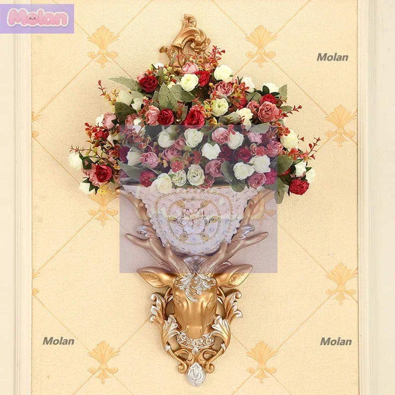 Европейская креативная голова оленя, большая настенная подвесная ваза для цветов, домашняя гостиная, настенная цветочная композиция, украшение для цветочного горшка, фон