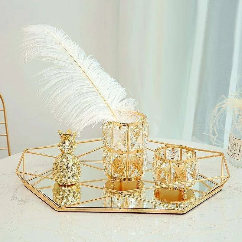 Европейская металлическая стеклянная Золотая тарелка для ювелирных изделий, геометрический лоток, зеркальное украшение в виде Розы, полка,...