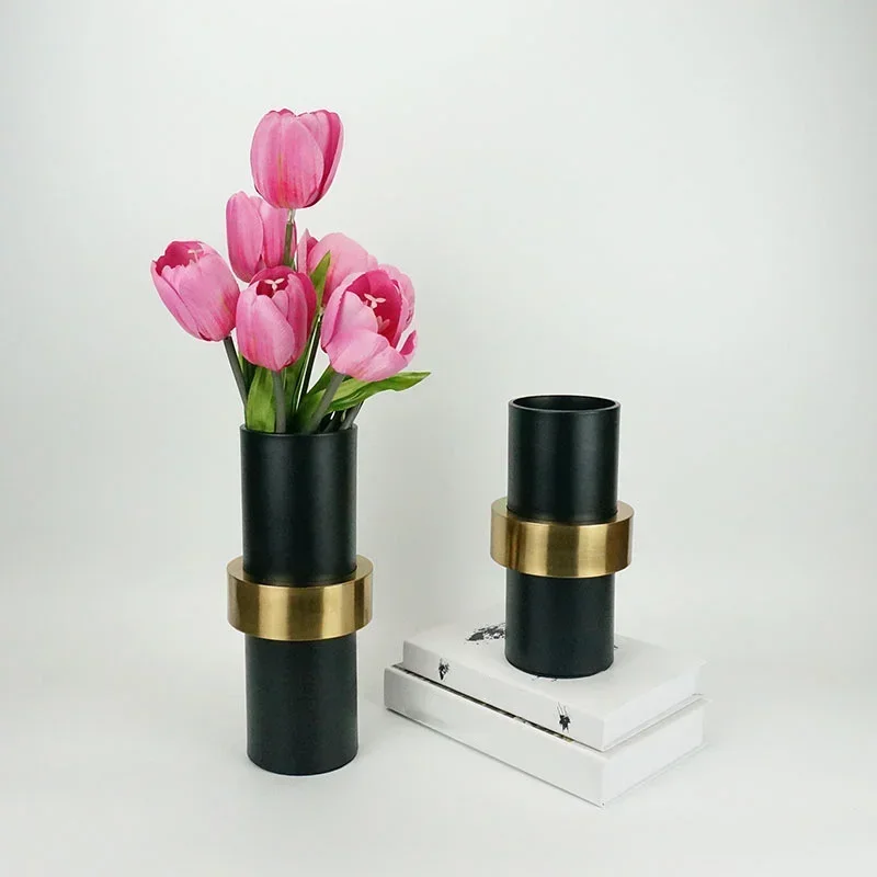 Европейская современная простая черная металлическая ваза для цветов, Декор, большой контейнер для цветов, композиция в подарок для гостиной, украшения из железа