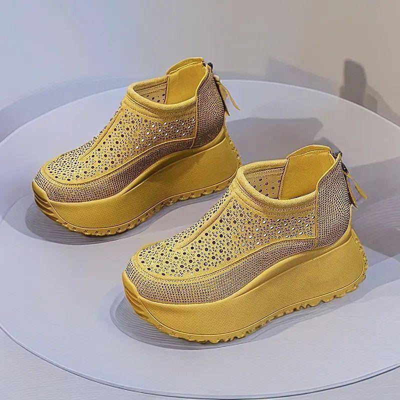 Европейская станция летняя женская обувь дышащая полая 2025 новая популярная обувь папы маленькая повседневная увеличивающая рост спортивная обувь 37 жёлтый