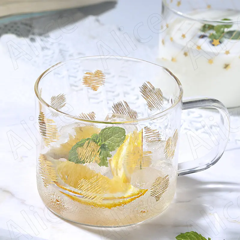Европейская стеклянная кружка, креативная чашка для послеобеденного чая с золотым рисунком сердца, кофейная чашка, настольные чашки для за...