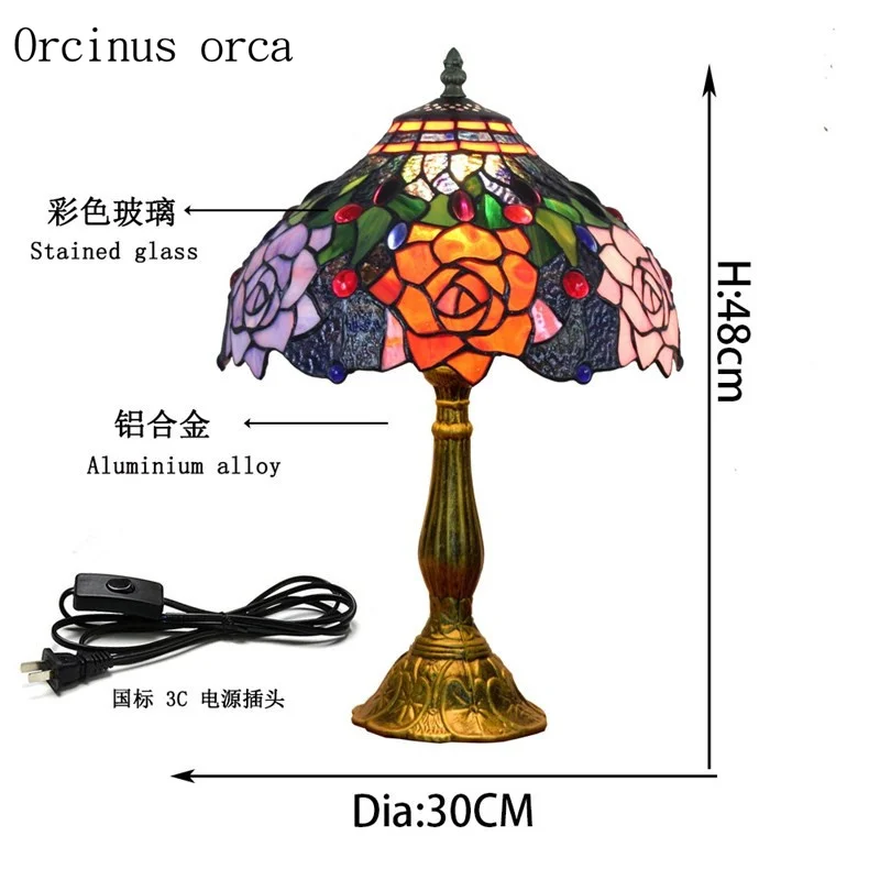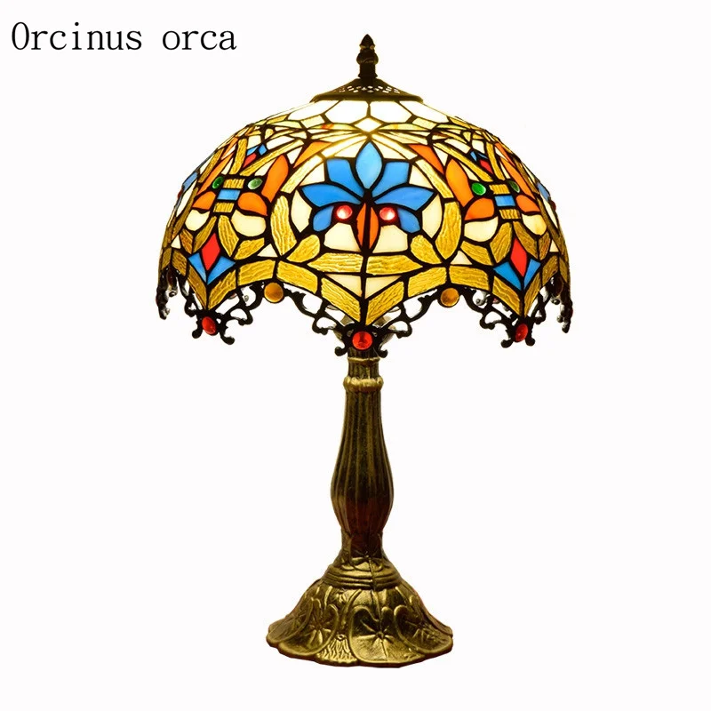 Европейская цветная стеклянная настольная лампа в стиле ретро, прикроватная лампа для спальни, средиземноморская пасторальная Цветная декоративная настольная лампа