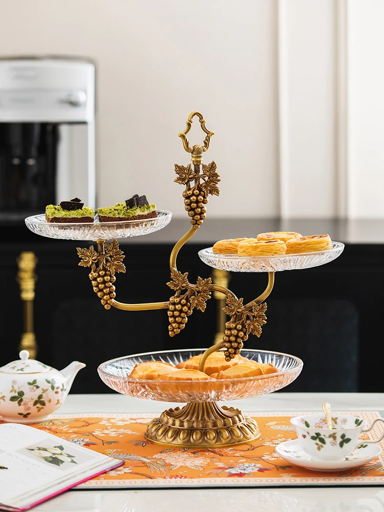 Европейская элитная роскошная латунная многослойная тарелка с фруктами, семейная гостиная, чайный столик, стол, димсам, торт, поднос для заказа